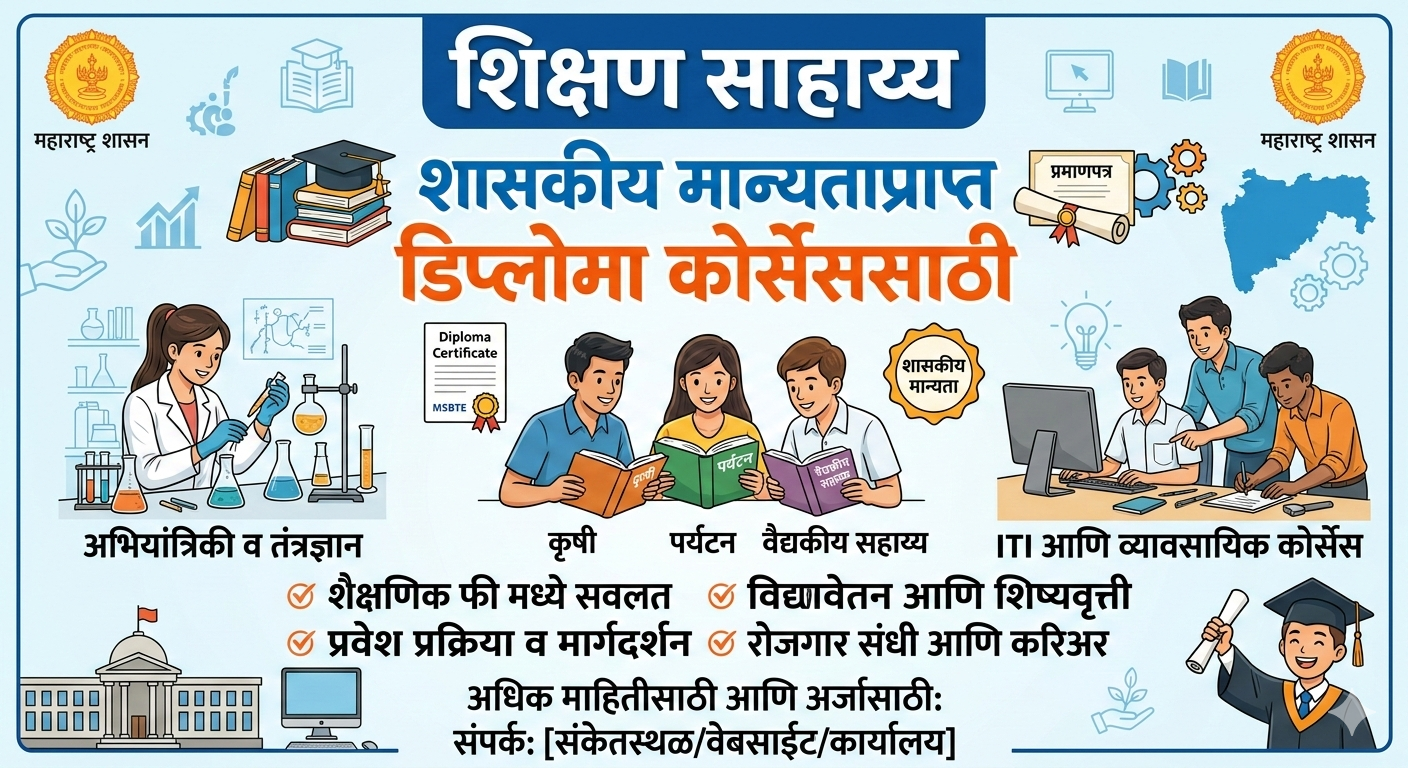 Educational Assistance for Government Recognized Diploma Courses शासकीय मान्यताप्राप्त पदविका अभ्यासक्रमांसाठी शैक्षणिक सहाय्य