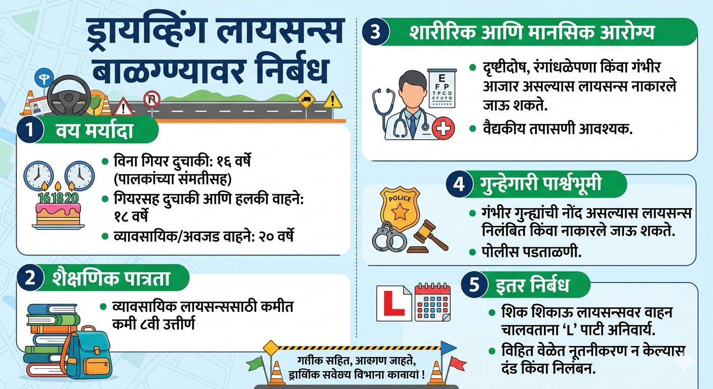 - प्रवाशांची संख्या: दुचाकी चालवताना चालकाव्यतिरिक्त केवळ एकच व्यक्ती मागे बसू शकते. एकापेक्षा जास्त व्यक्तींना मागे बसवणे (Triple Seat) हा कायद्याने गुन्हा आहे.